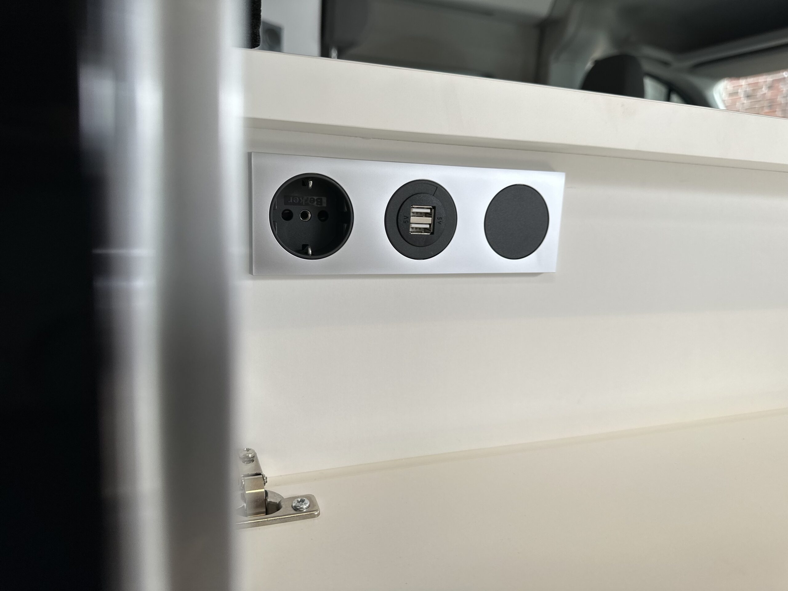 Je zwei USB-Anschlüsse befinden sich in der Dinette und im Schlafbereich – zwei weitere sind bei geöffneter Schiebetür von außen zugänglich.